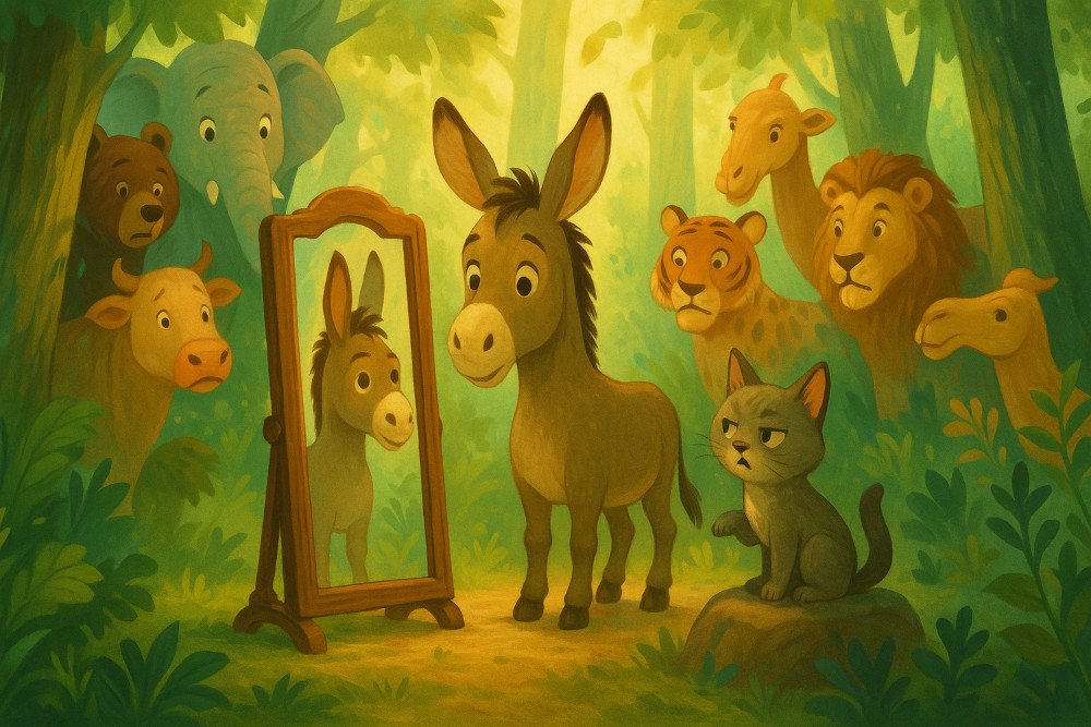 Apa yang terjadi saat hewan-hewan hutan mencoba memahami keindahan lewat cermin? Sebuah dongeng satir nan jenaka dari Mark Twain ini akan mengajak kita menertawakan ego dan tafsir yang keliru.